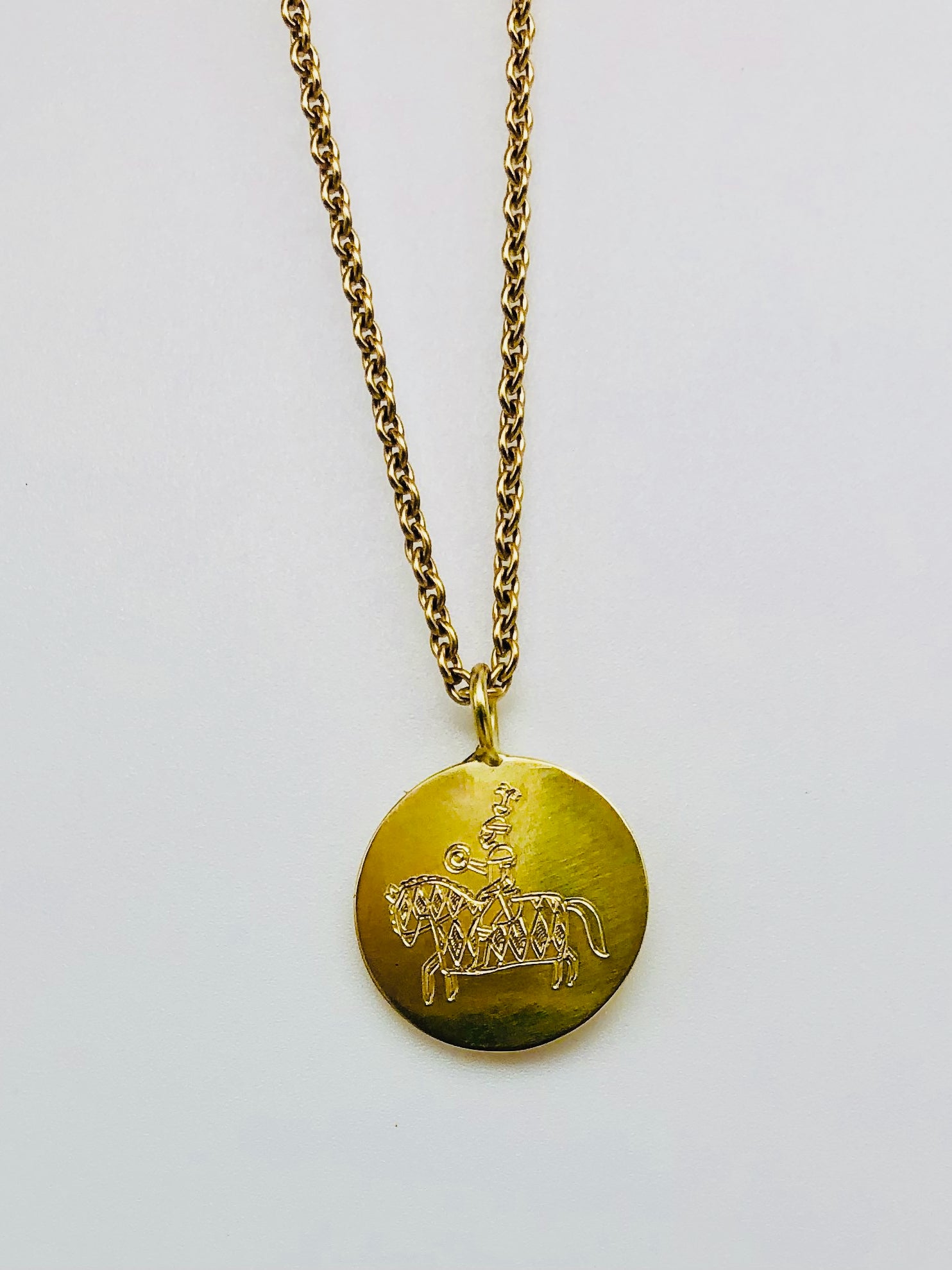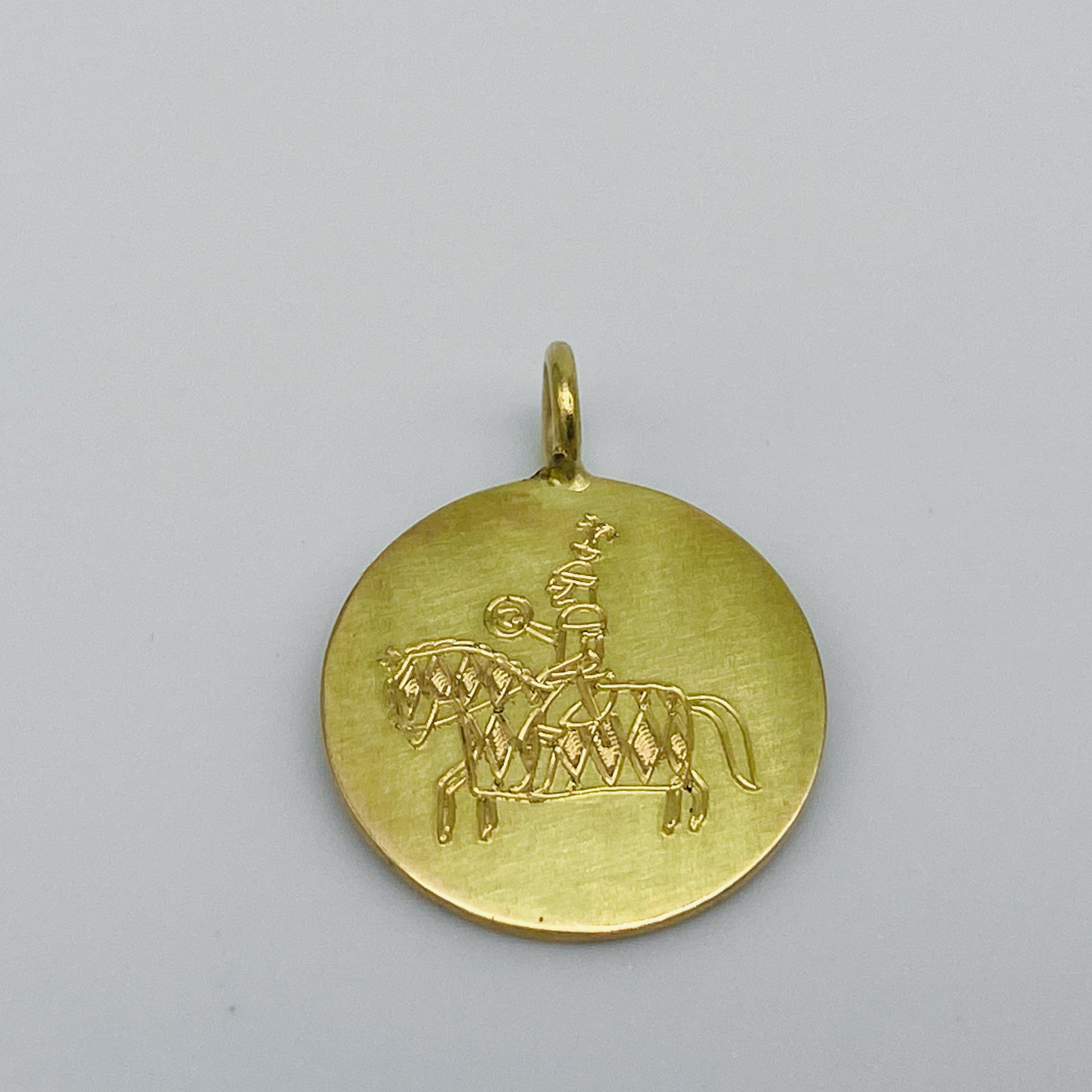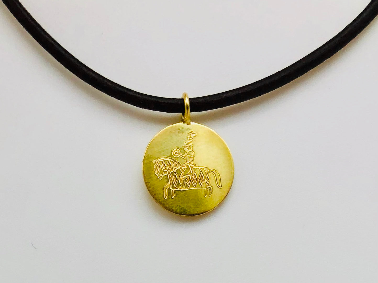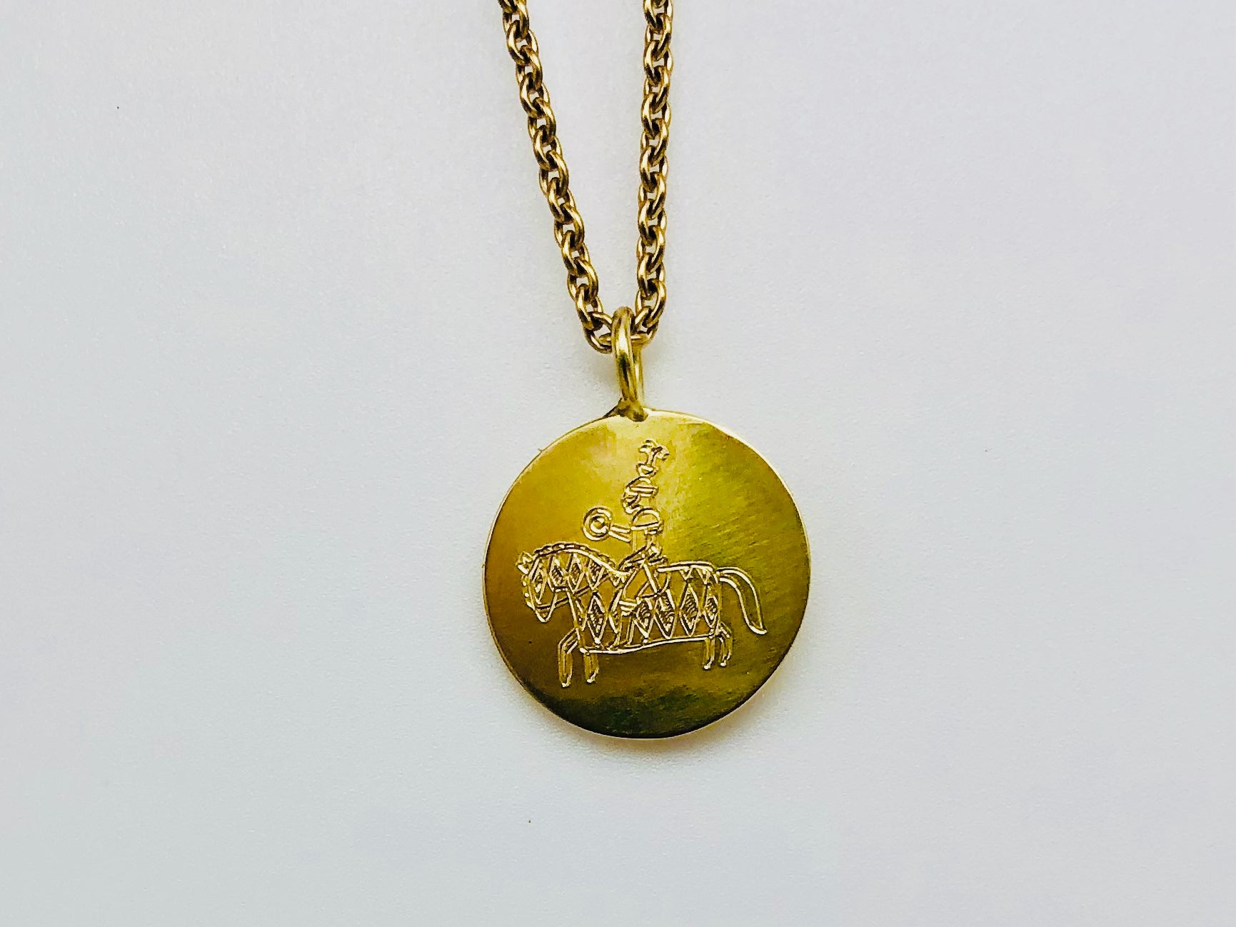 The knight sits proudly on horseback. The animal is adorned with a Bavarian flag as a robe. The noble knightly virtues include loyalty to oneself, courage, bravery, composure and pride. Don't you think these still sound very current? What a wonderful symbol on the neck.