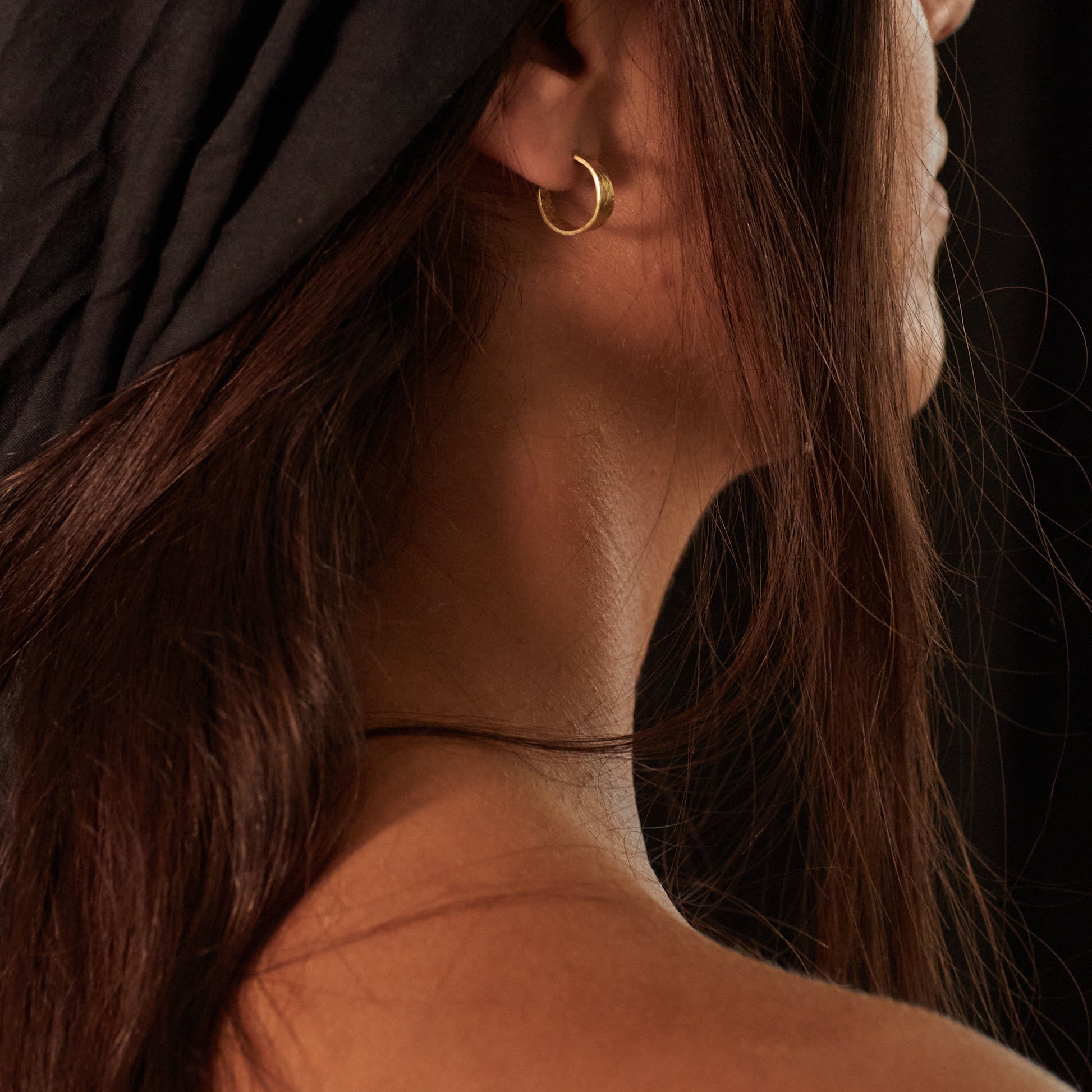 Die Prägung auf der Innenseite der Creolen erinnert an eine Wabe. Außen an Schlangenhaut.