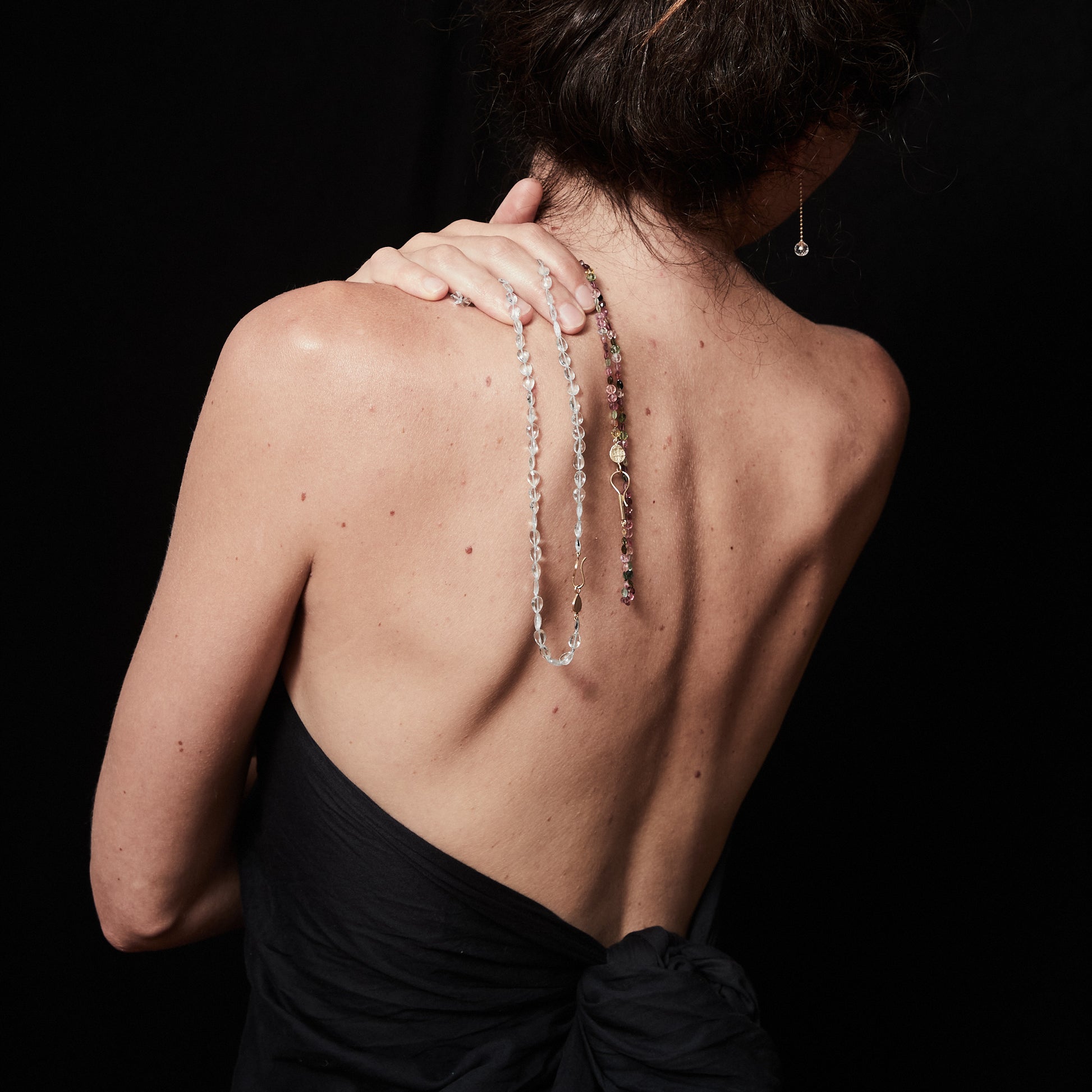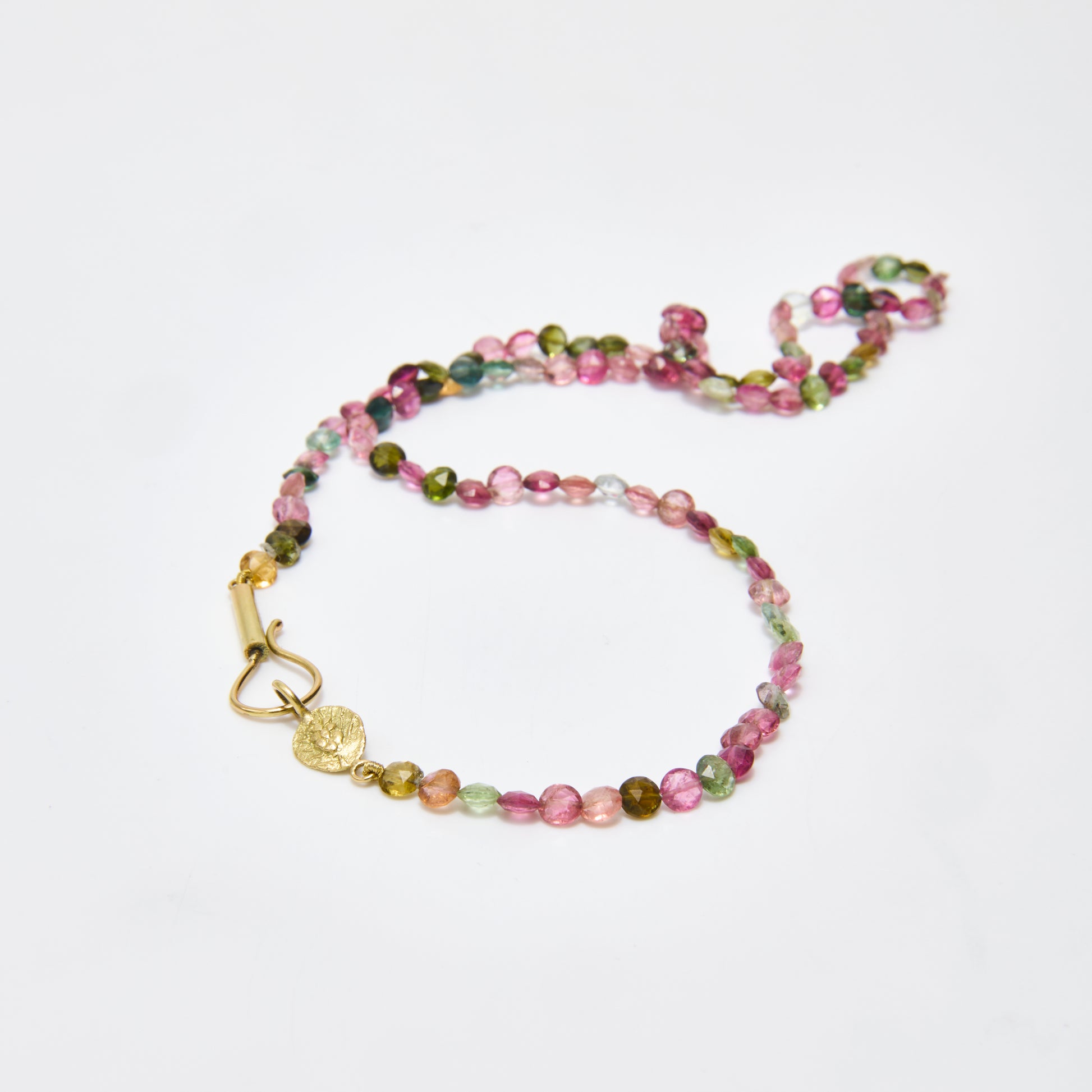 Bunte Turmaline in leutend hellen Farben zu kleinen facettierten Linsen geschliffen.