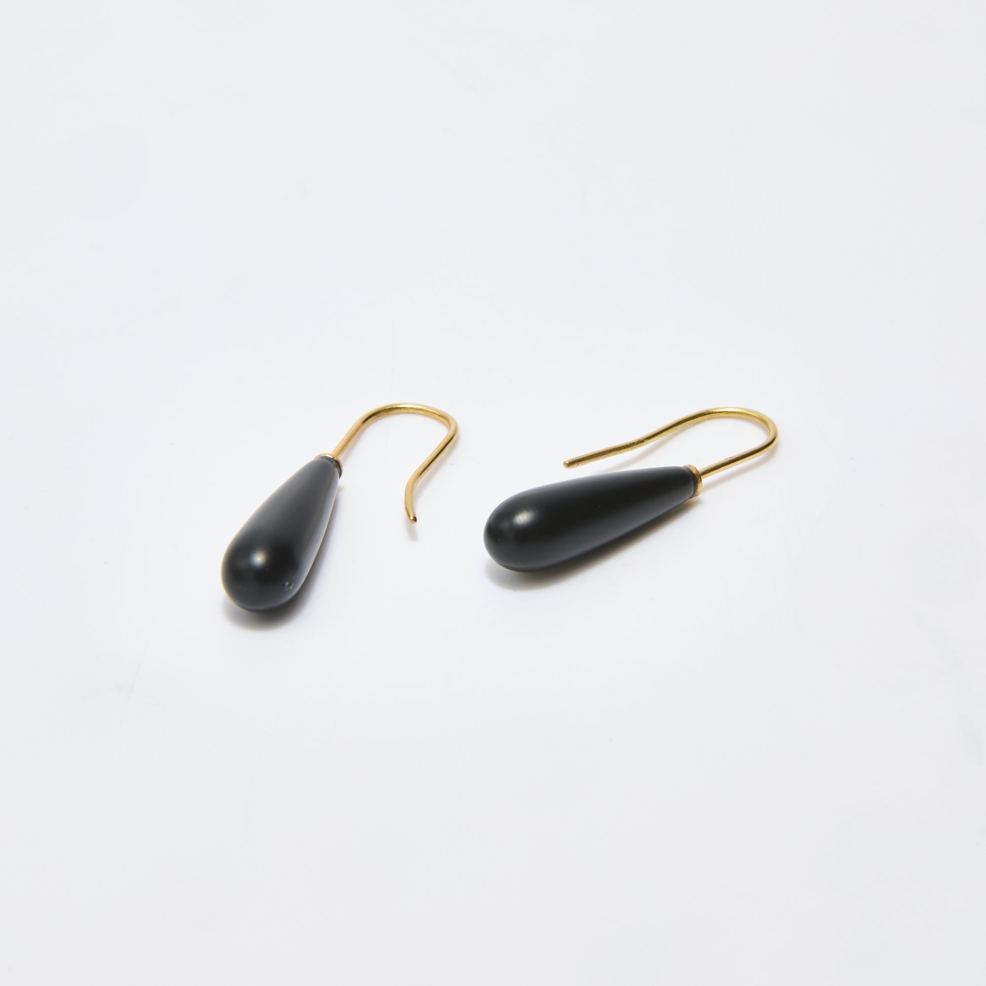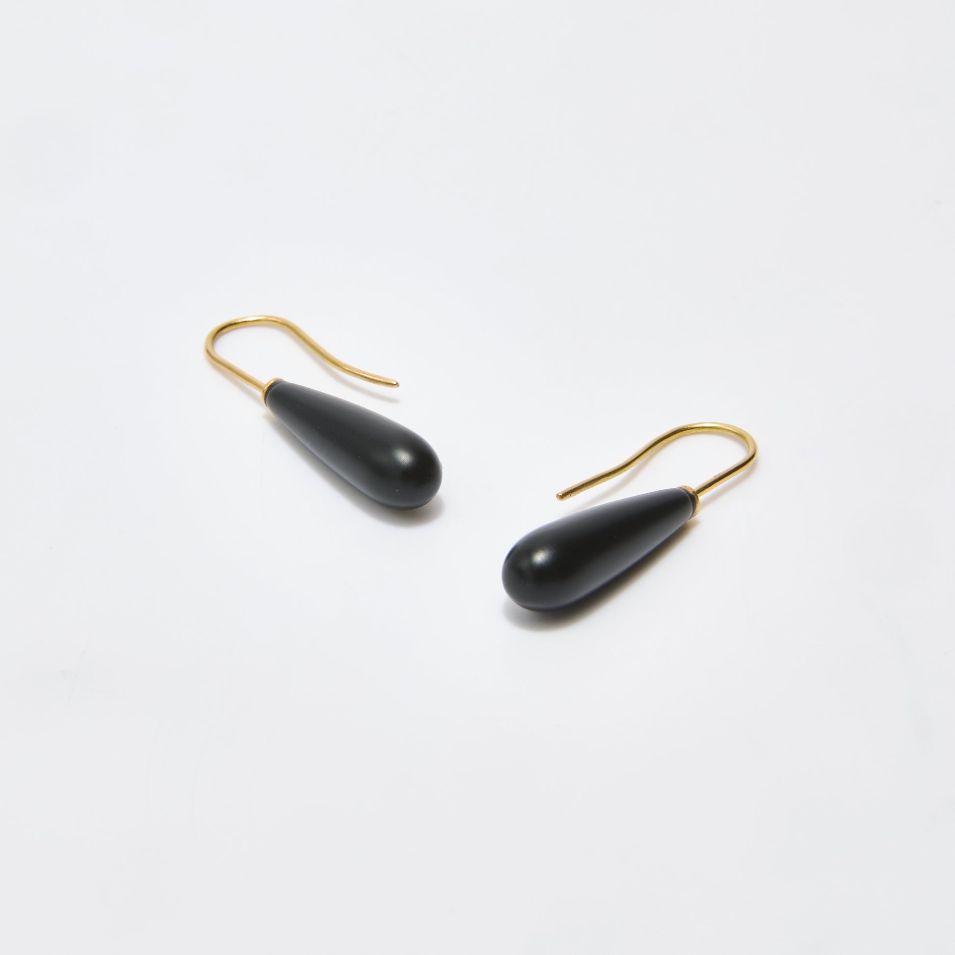 Schwarzer, matter Onyxtropfen und 18kt Gelbgold verbinden sich. Ganz minimalistisch. Ganz schlicht. Sehr elegant. Passt im Alltag oder sinnlich elegant ausgeführt.