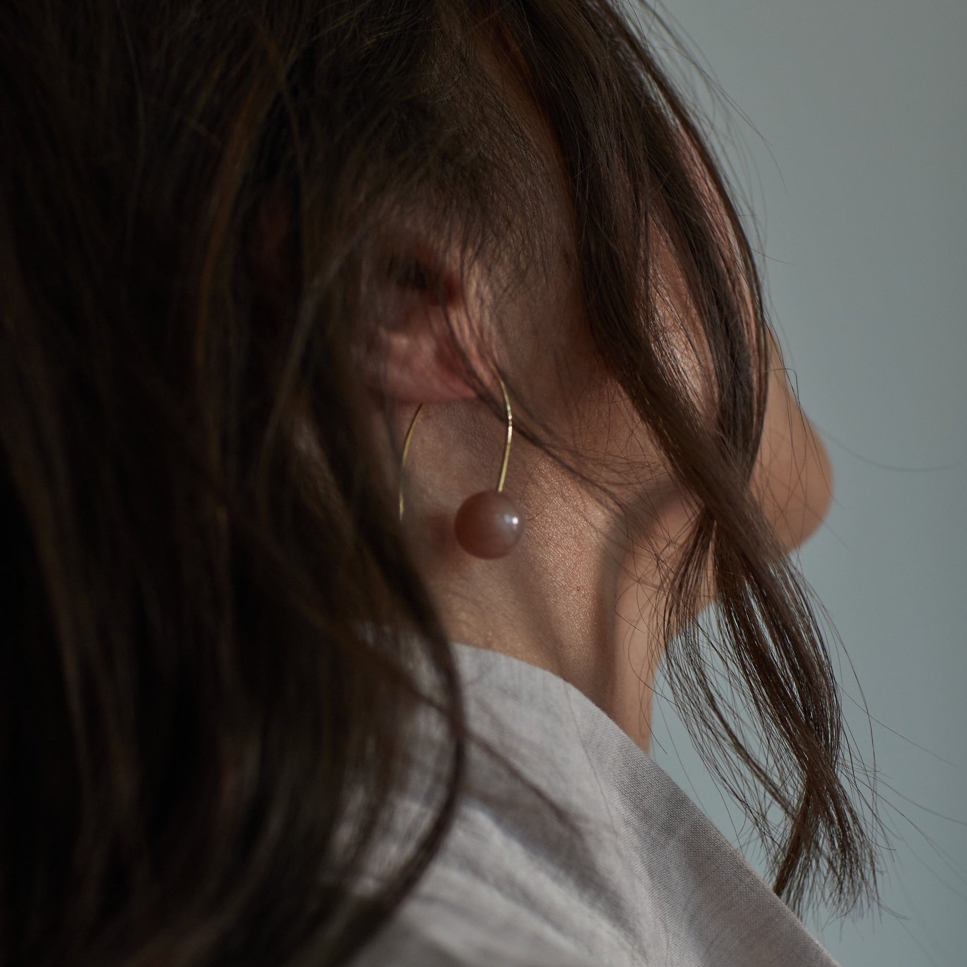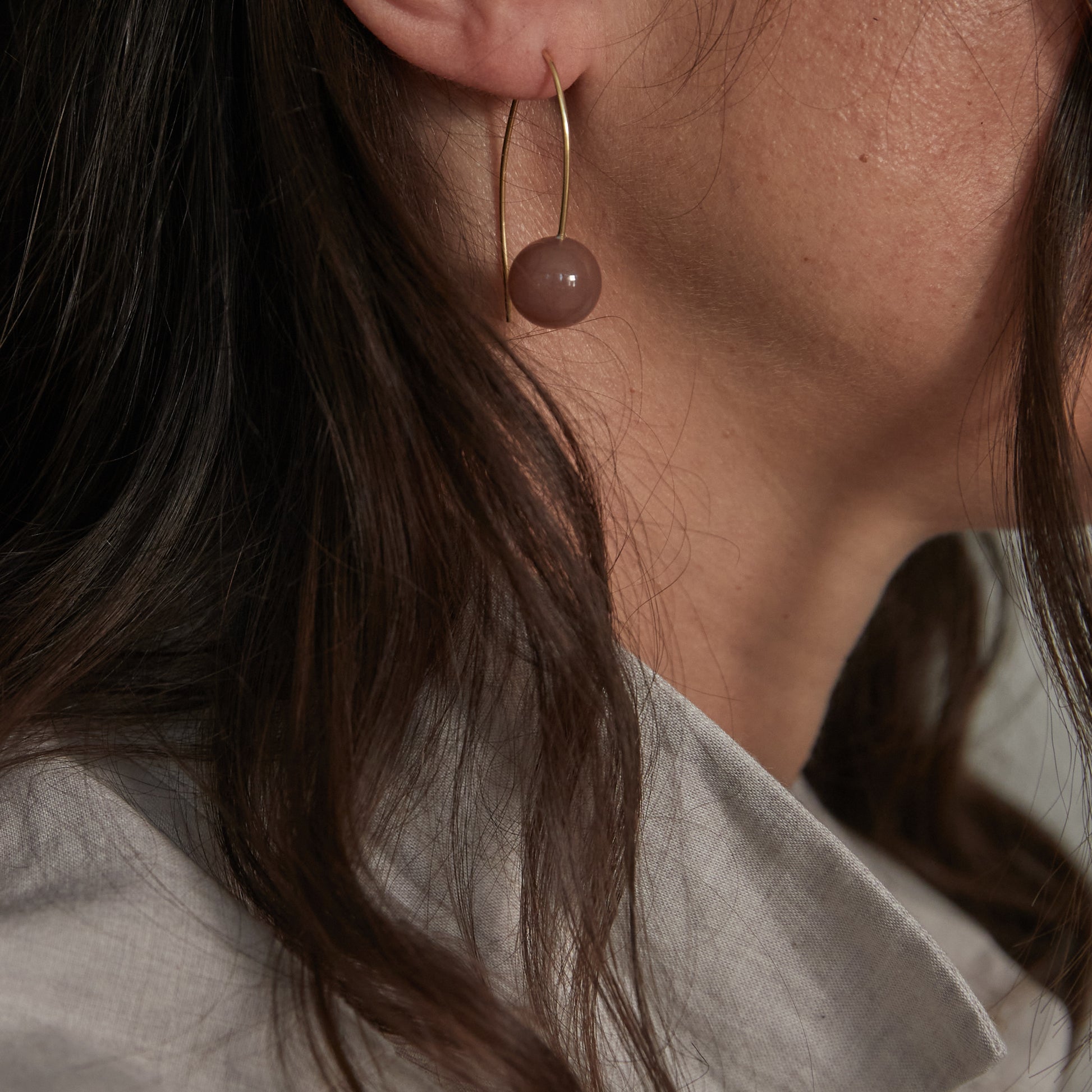 Ganz atemberaubende, minimalistische Ohrhänger. Mondsteinkugeln und 18kt Gelbgold verbinden sich und werden zu zwei Vollmonden an den Ohren. Wir Frauen bewegen uns im Zyklus mit dem Mond. Wir sind mit dem Rhythmus der Natur verbunden. Zeig dich Frau. Du bist so schön.