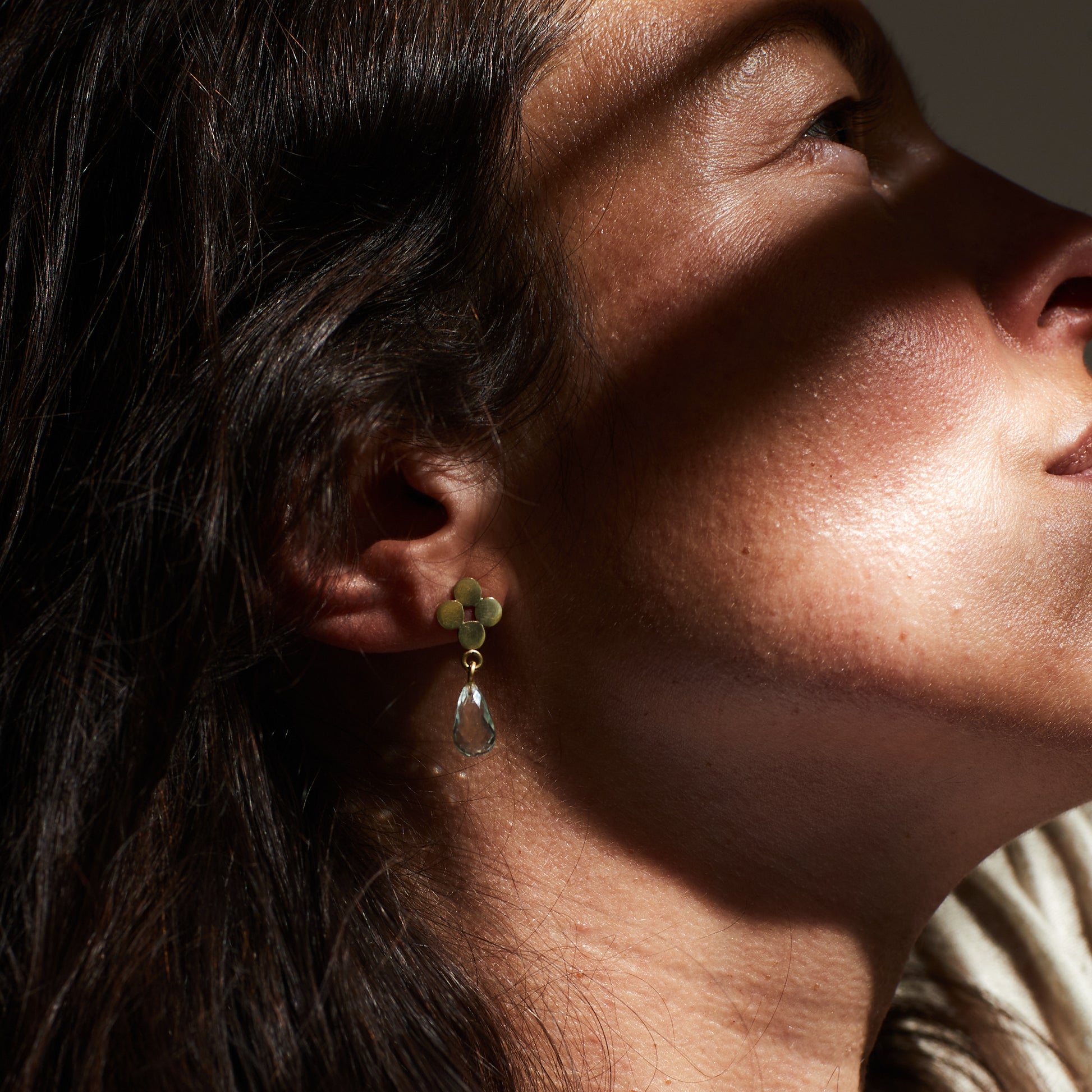 "Anna" ist sehr besonders und dennoch zurückhaltend und filigran. Die blauen Aquamarine sind sehr zart im Farbton. Sie brechen das Licht durch ihre Facetten. Blaue Augen werden beim Tragen dieser Ohrringe noch strahlender.