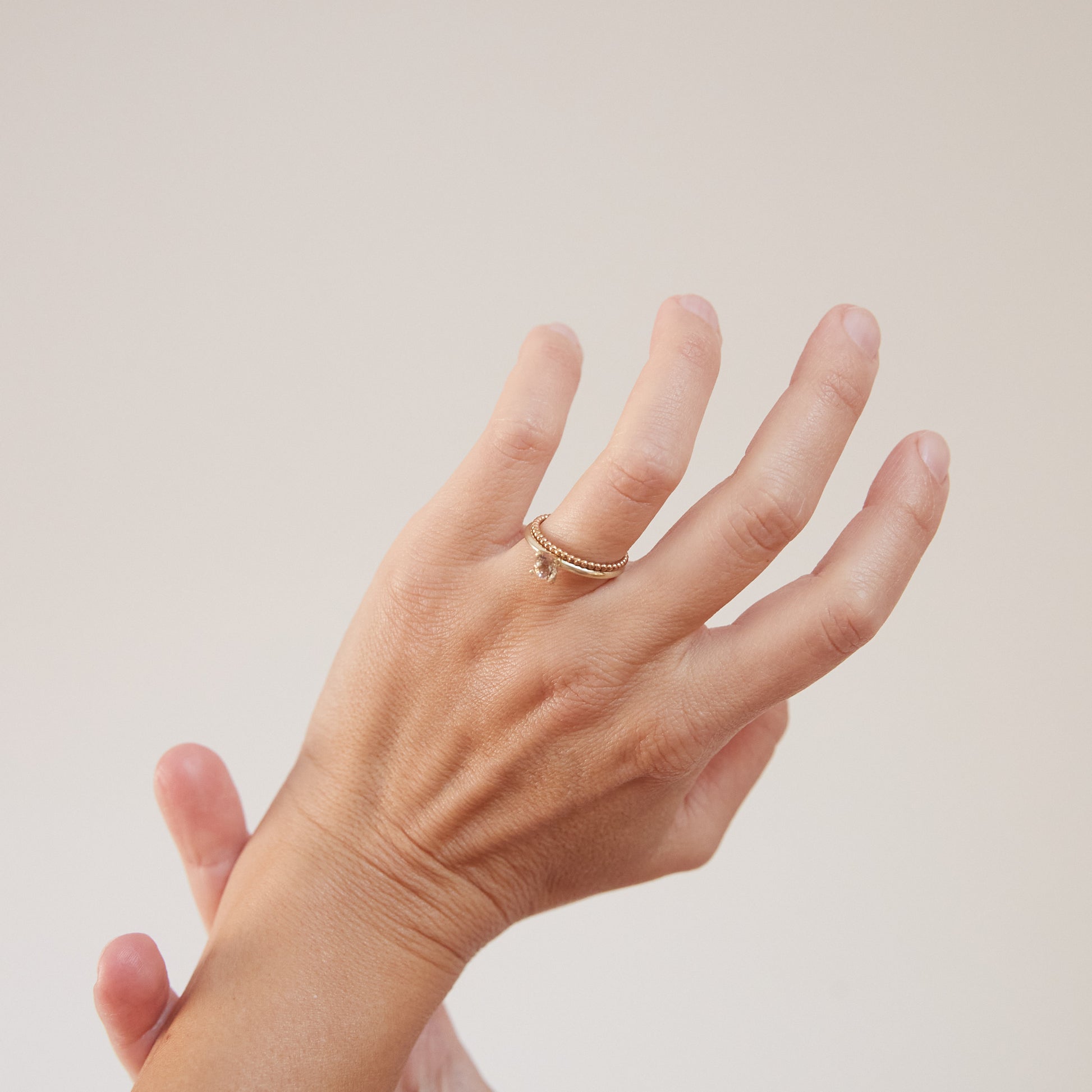"Astrid" ist zart rosefarben. Ein Ring der sich nicht verstecken lässt. Die hohe Zargenfassung läuft spitz nach unten zu und mündet auf der runden Ringschiene. Der Morganit ist in 14kt Gelbgold verarbeitet und lässt sich zum Ehering oder anderen Beisteckringen hervorragend kombinieren.